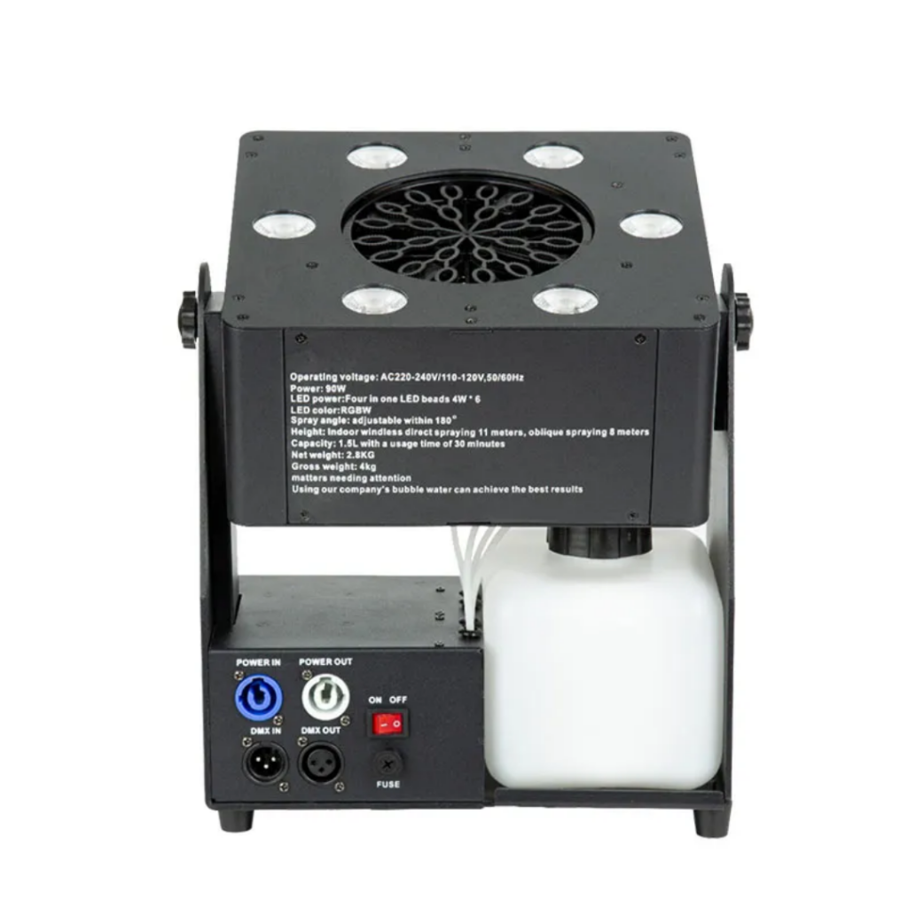 Bubble Machine | RGBW 4IN1 LED-verlichting: verlicht uw evenement met levendige RGBW 4IN1 LED-verlichting, waardoor de visuele aantrekkingskracht van de bellenmachine wordt versterkt.