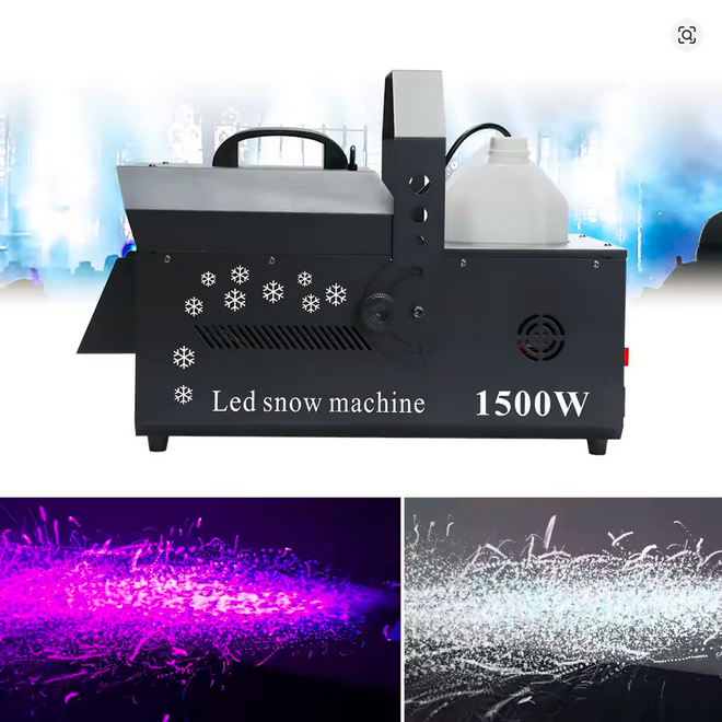 Dit is een robuuste led-sneeuwmachine met hoge druk en grote output die overvloedige hoeveelheden sneeuw produceert met LED-lichteffect dat aanzienlijke afstanden kan blazen.
