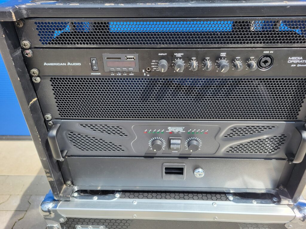 • 1x Omnitronic versterkerrack met xlr aansluitingen