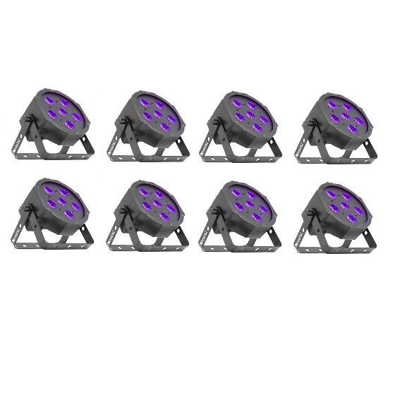 Deze flatpar produceert een groot ultraviolet licht van 6 heldere 6W LED’s in een compacte behuizing die bijna overal gebruikt kan worden, zelf in truss. Alles wat je nodig hebt voor een blacklight. Kenmerken o.a. Master/Slave mode, muziekgestuurd, strobe mode, elektronische dimmer, variabele speedfunctie, e.v.a.. U kunt tevens uw eigen show maken met behulp van de 2 of 4-kanaals DMX-modus. De infrarode afstandsbediening maakt het mogelijk om gemakkelijk te programmeren en kunt u de par ter plaatste en op afstand bedienen. Met behulp van de IEC-uitgang kunt u meerdere units eenvoudig met elkaar verbinden.