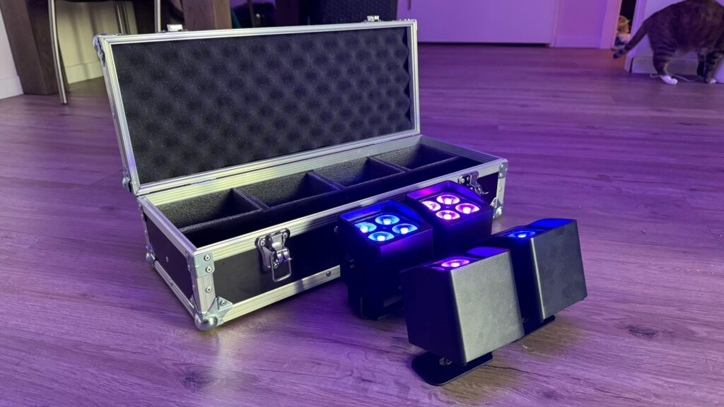 4x Battery uplight IP65 with RGBW LEDs met koffer